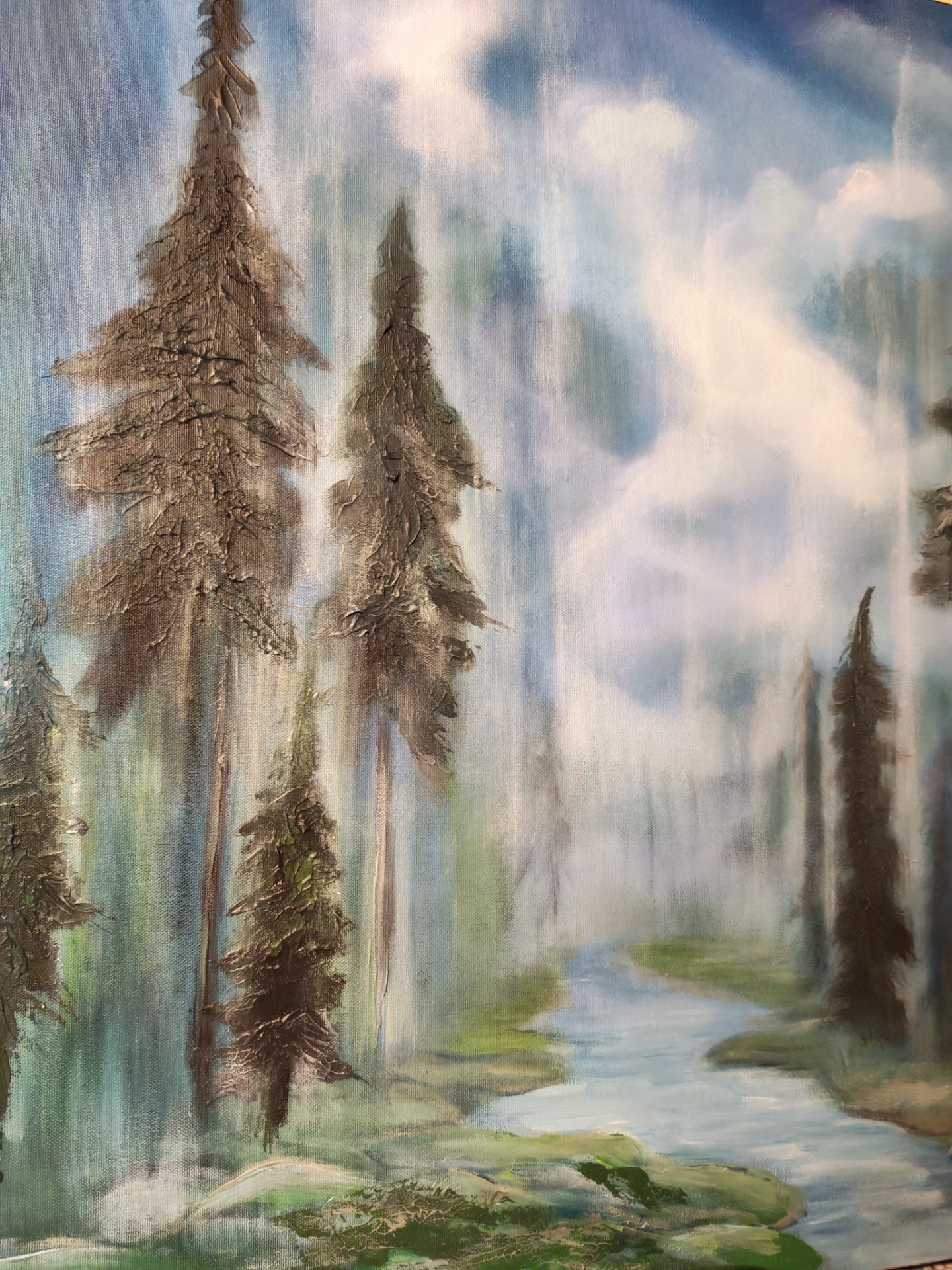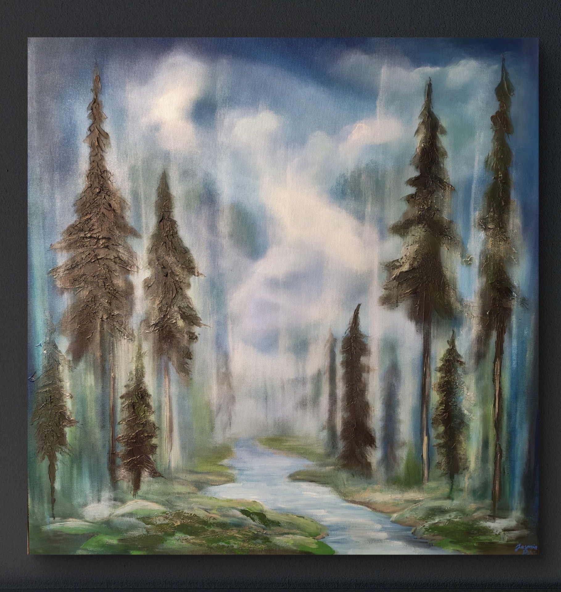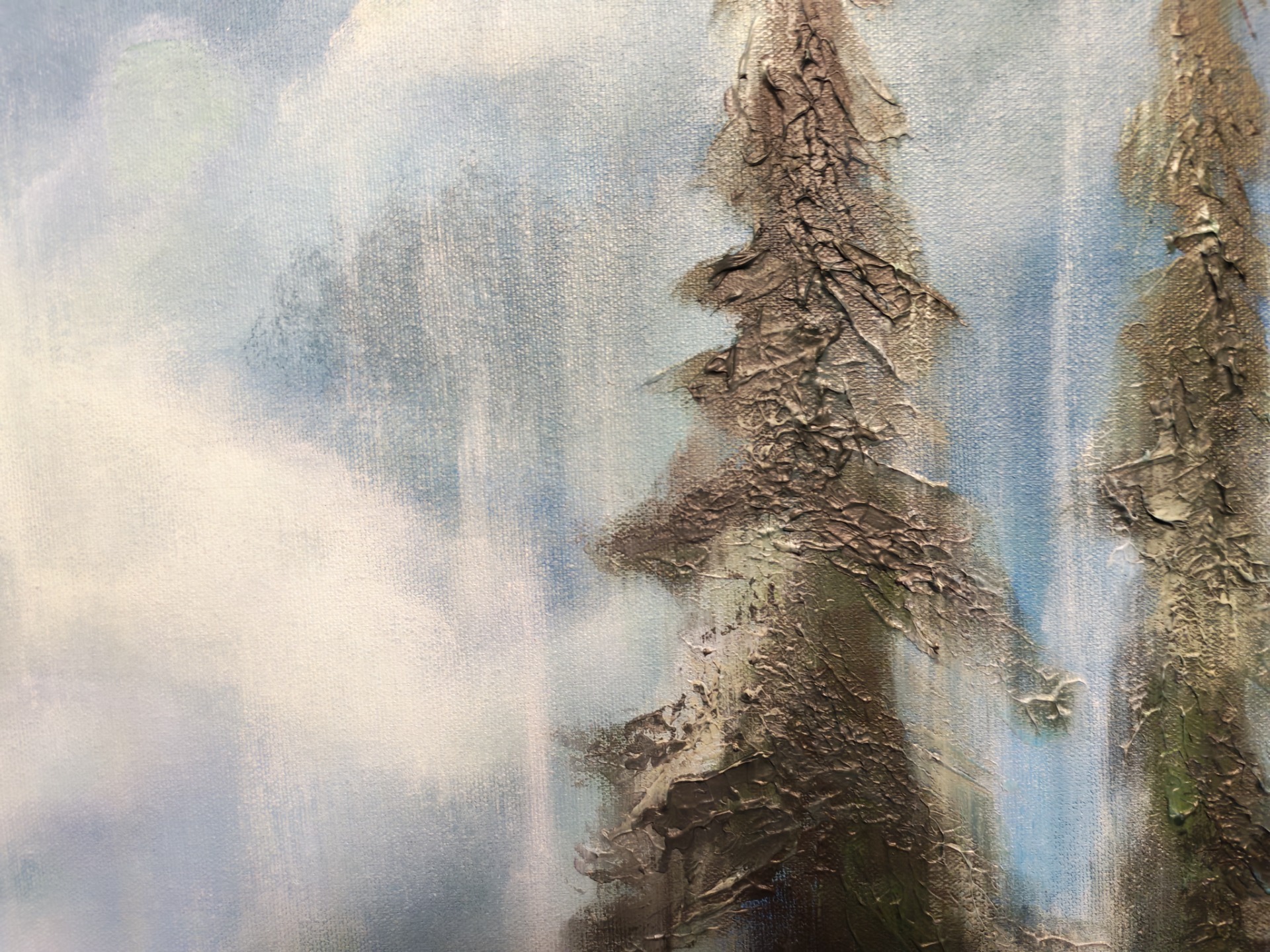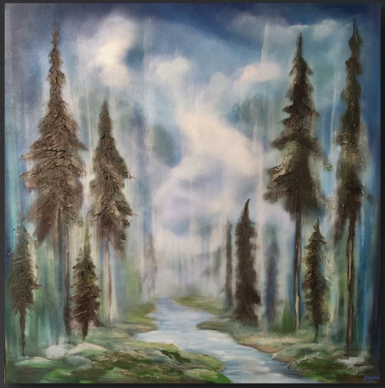 Kesällä itikat ärsyttävät, mutta helmikuussa kun pakkanen puree, sen olisi valmis vaihtamaan sataan itikan pistoon jos vain pääsisi siihen tuttuun kuusimetsään, missä valo siivilöityy oksien välistä. Metsä on lääke. Teos on maalattu talven kovimmilla pakkasilla, kuusimetsän kaipuussa.