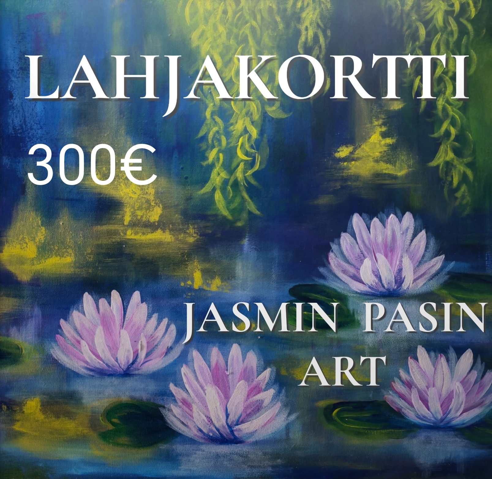 300€ lahjakortti Jasmin Pasin Art taidepalveluihin (verkkokauppa) tai tilaustyö n 50-60cm x 60cm.